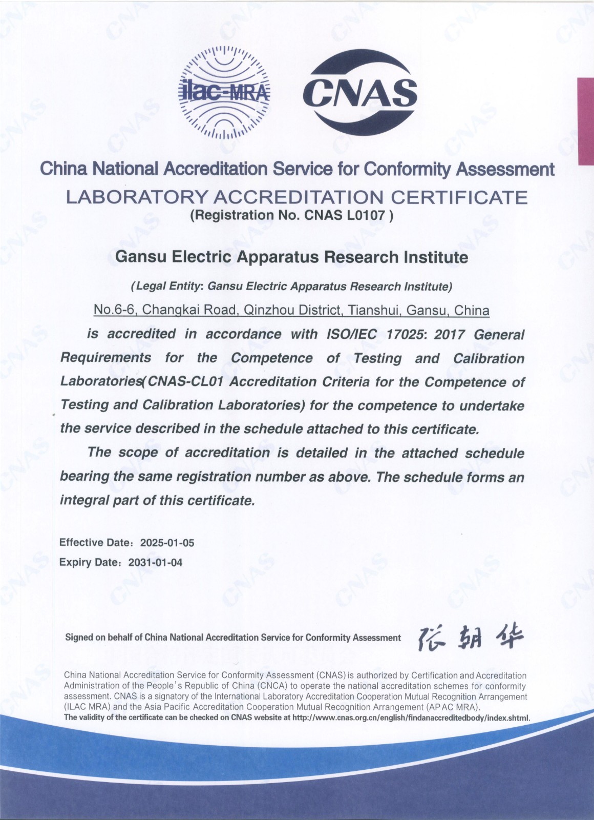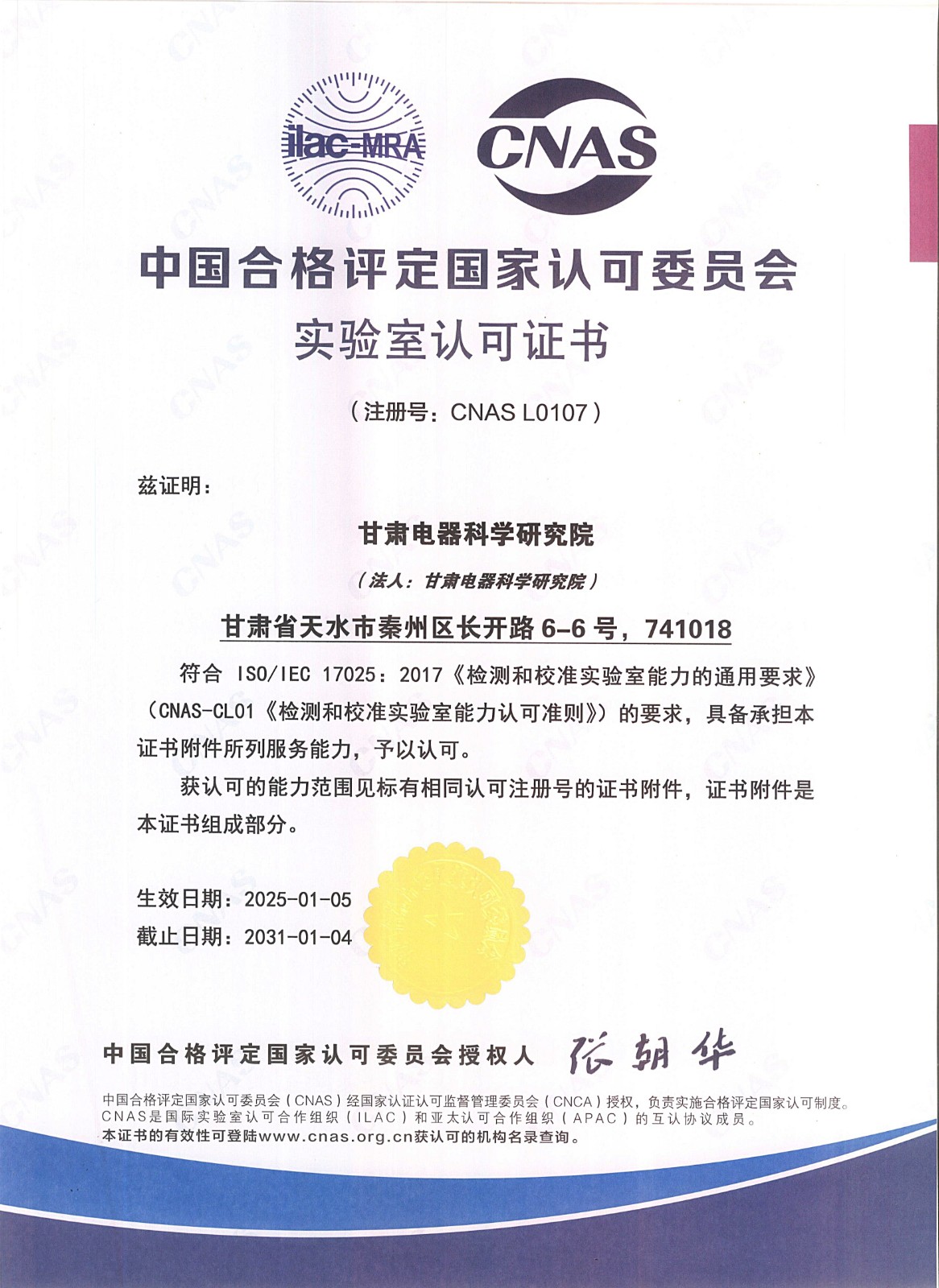 國家電力測量用互感器型式評價實驗室(甘肅)